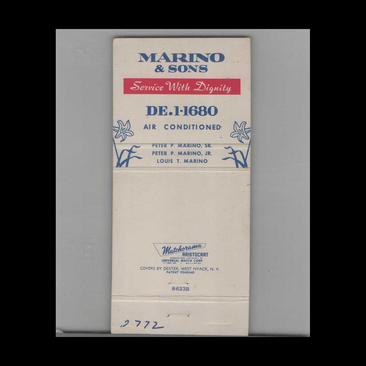 Vintage matchbook cover advertising Marino & Sons Providence, RI.
