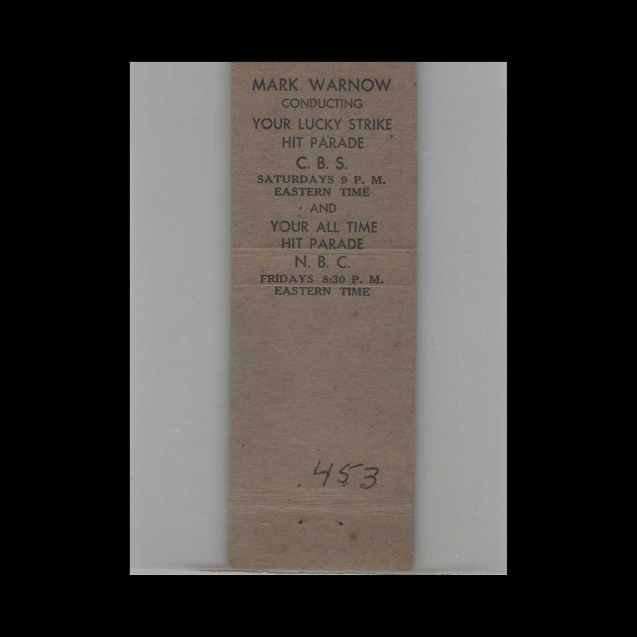 Matchbook Cover Mark Warnow Lucky Strike Parade NYC