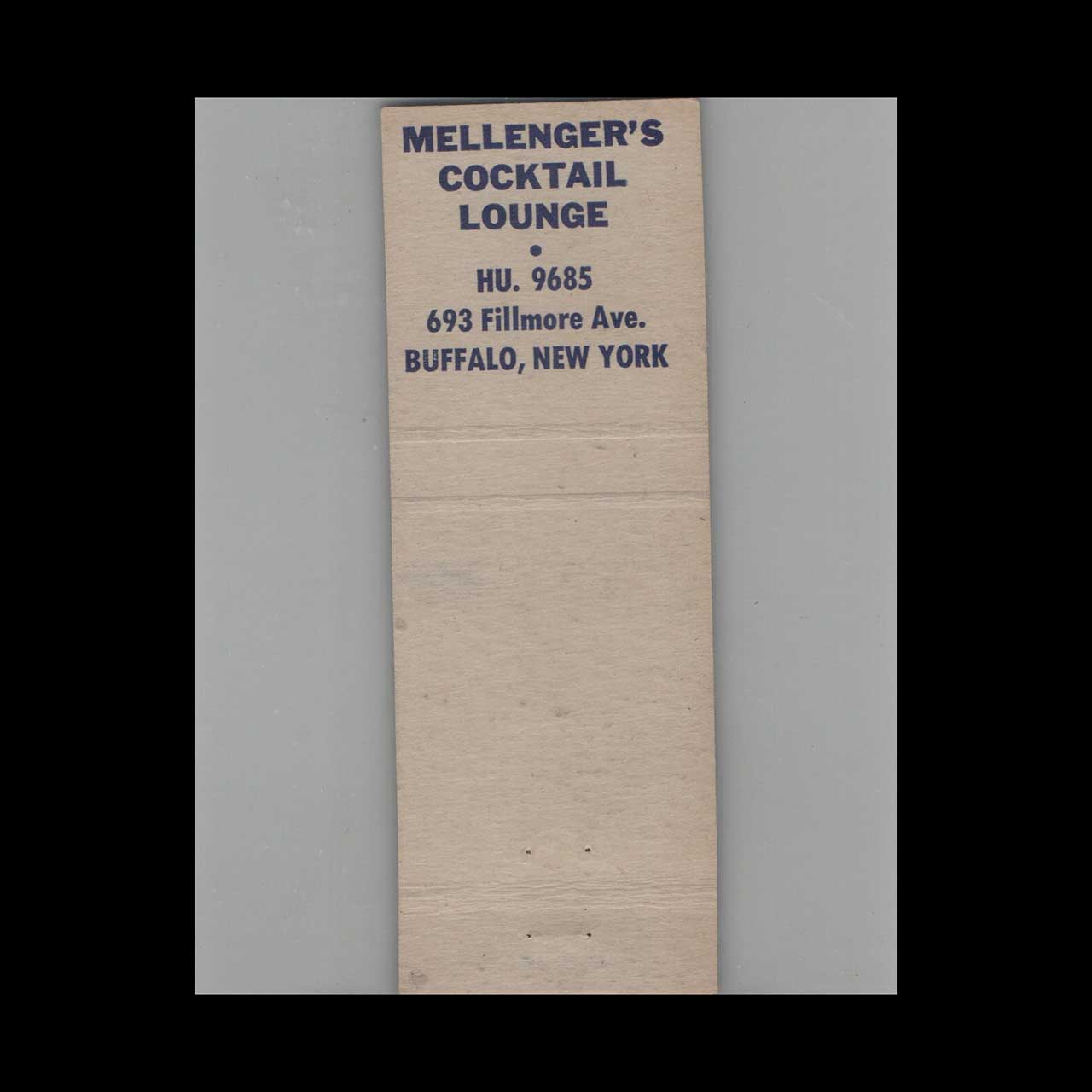 Vintage matchbook cover advertising Mellenager’s Cocktail Lounge Buffalo, NY #1.