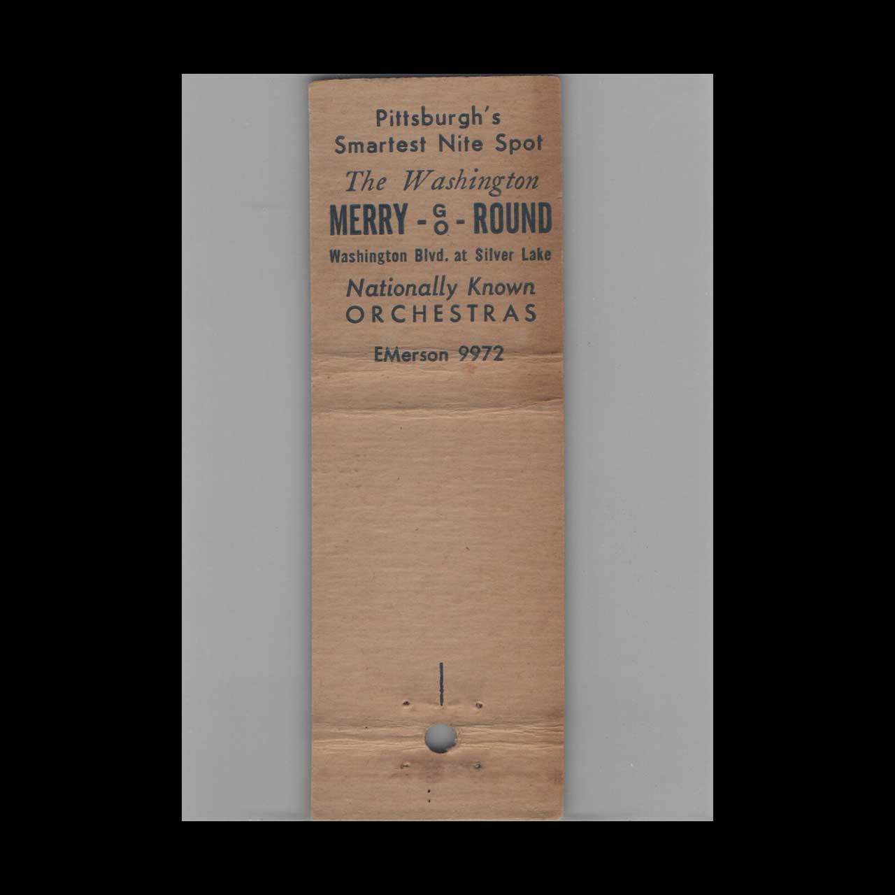 Vintage matchbook cover advertising Merry-Go-Round Nite Spot Pittsburgh PA.