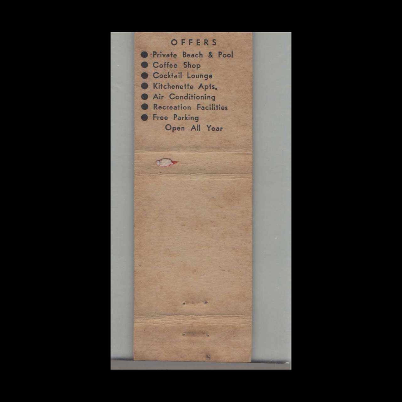 Vintage matchbook cover advertising Miami Beach Caravan Motel Miami Beach, FL.