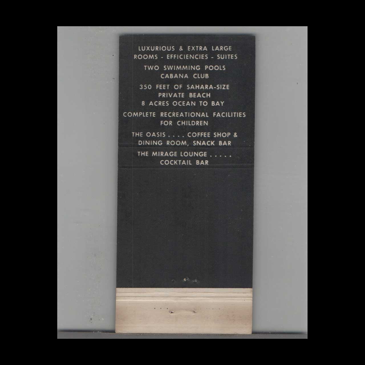Vintage matchbook cover advertising Miami Beach, FL Sahara Luxury Resort.