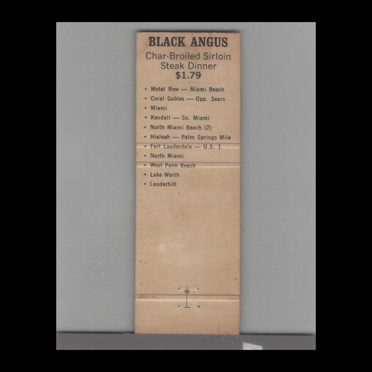 Vintage matchbook cover advertising Miami, FL Black Angus Restaurants and Lounges #1.