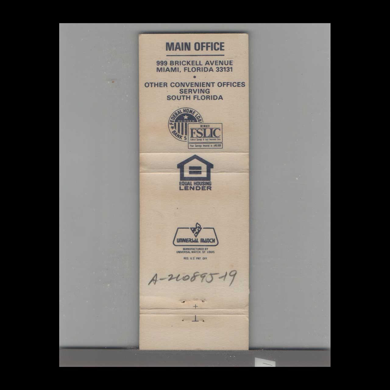 Matchbook Cover Miami, FL Citizens Federal Savings and Loan Association