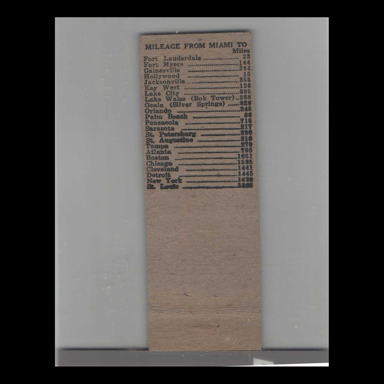 This vintage matchbook cover promotes Miami, FL De Witt’s Ocean Ranch Hotels. Produced during the mid-century advertising era, it reflects period typography and graphic design. A collectible piece of American advertising ephemera suitable for display or archival preservation.