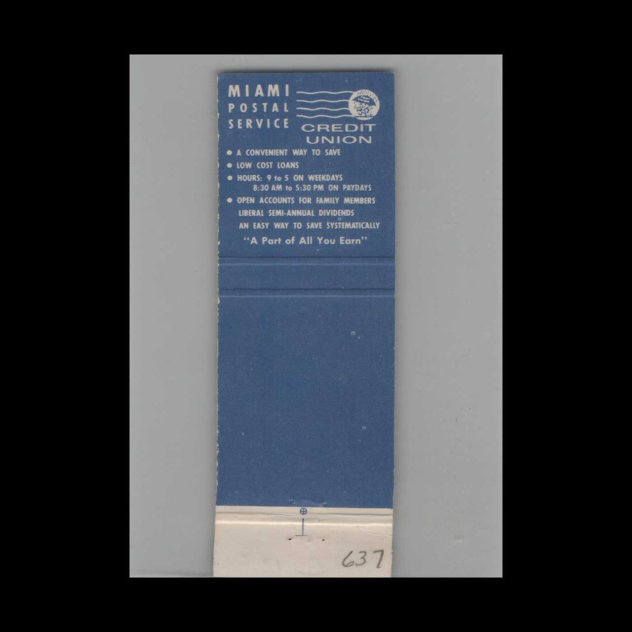 Matchbook Cover Miami Postal Service Credit Union FL