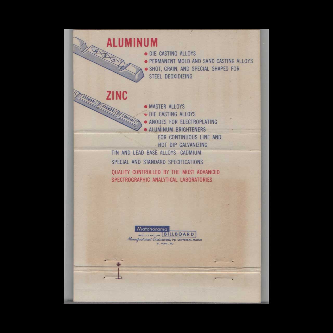 Vintage matchbook cover advertising Michigan Standard Alloys Inc Benton Harbor MI #8.