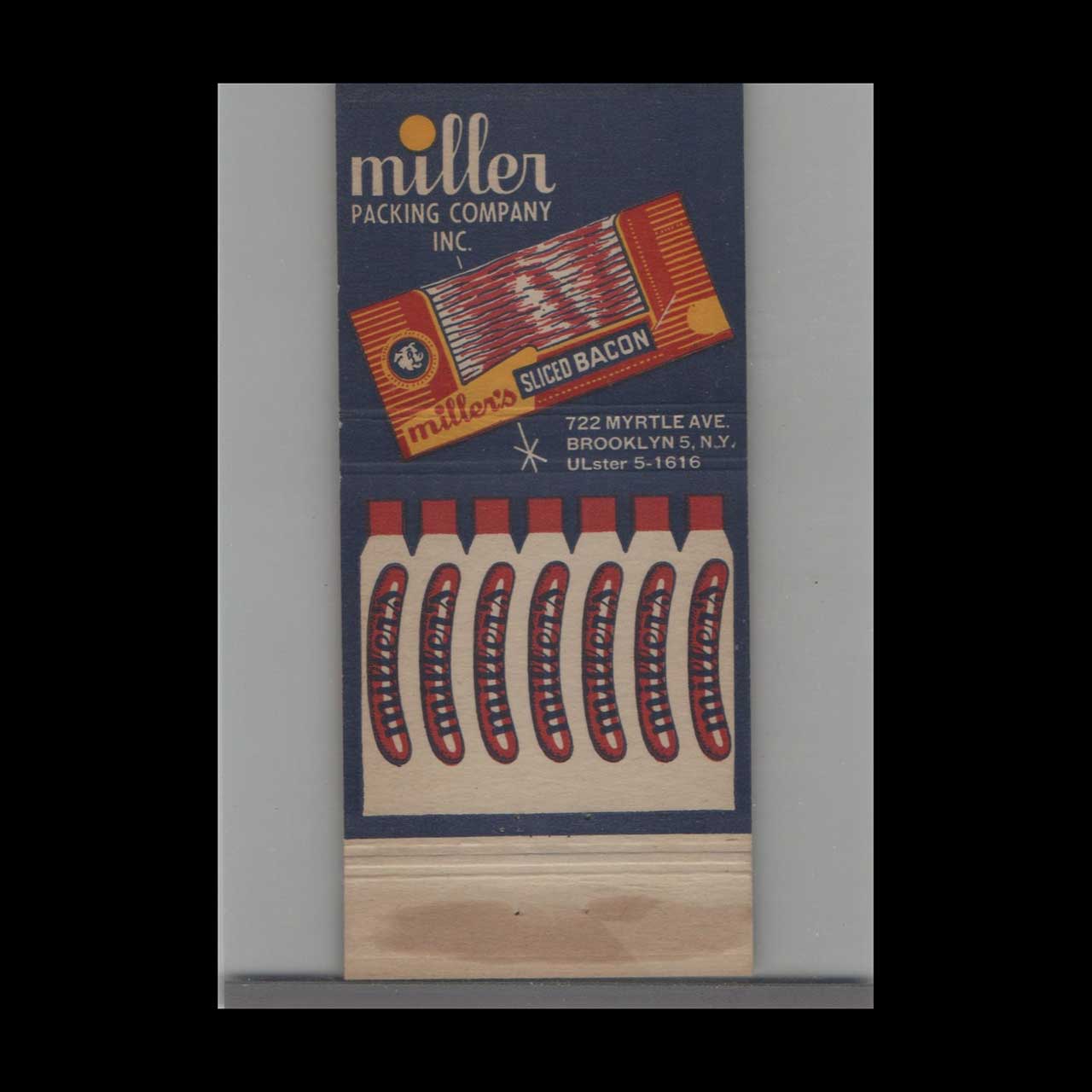 Vintage matchbook cover advertising Miller’s Meat Products Brooklyn, NY Pig.