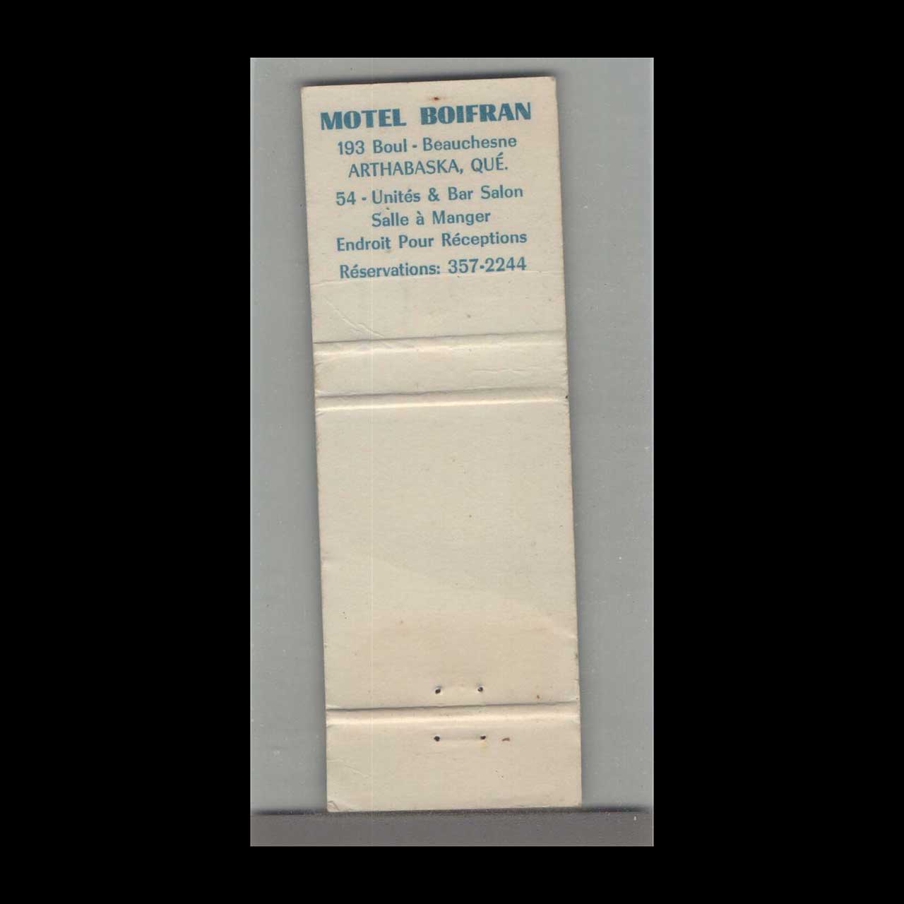 Matchbook Cover – Motel Boifran Arthabaska, Quebec