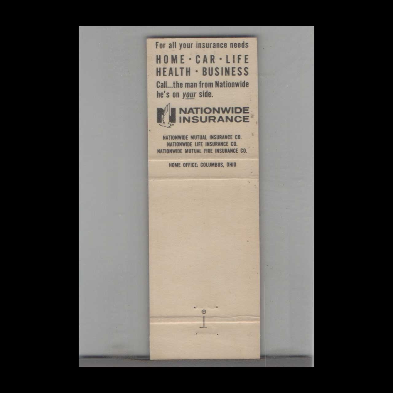 Vintage matchbook cover advertising Nationwide Insurance Charles E. Lego Palmyra, PA.