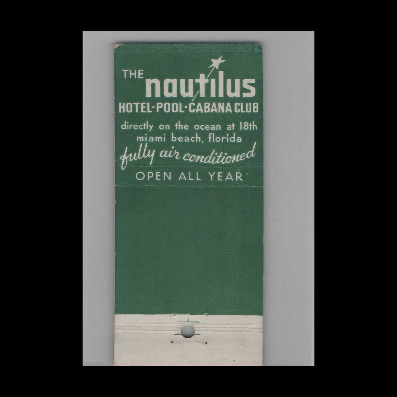 Vintage matchbook cover advertising Nautilus Hotel Miami Beach FL.