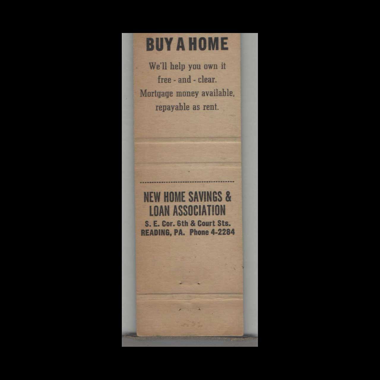 Matchbook Cover – New Home Savings & Loan Association Reading, PA
