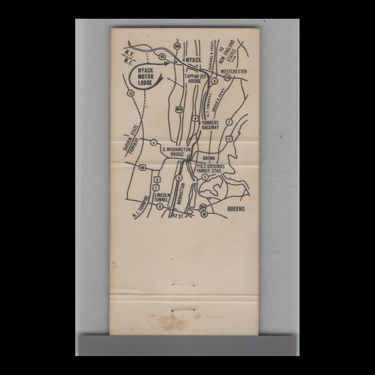 Vintage matchbook cover advertising Nyack Motor Lodge West Nyack, NY.
