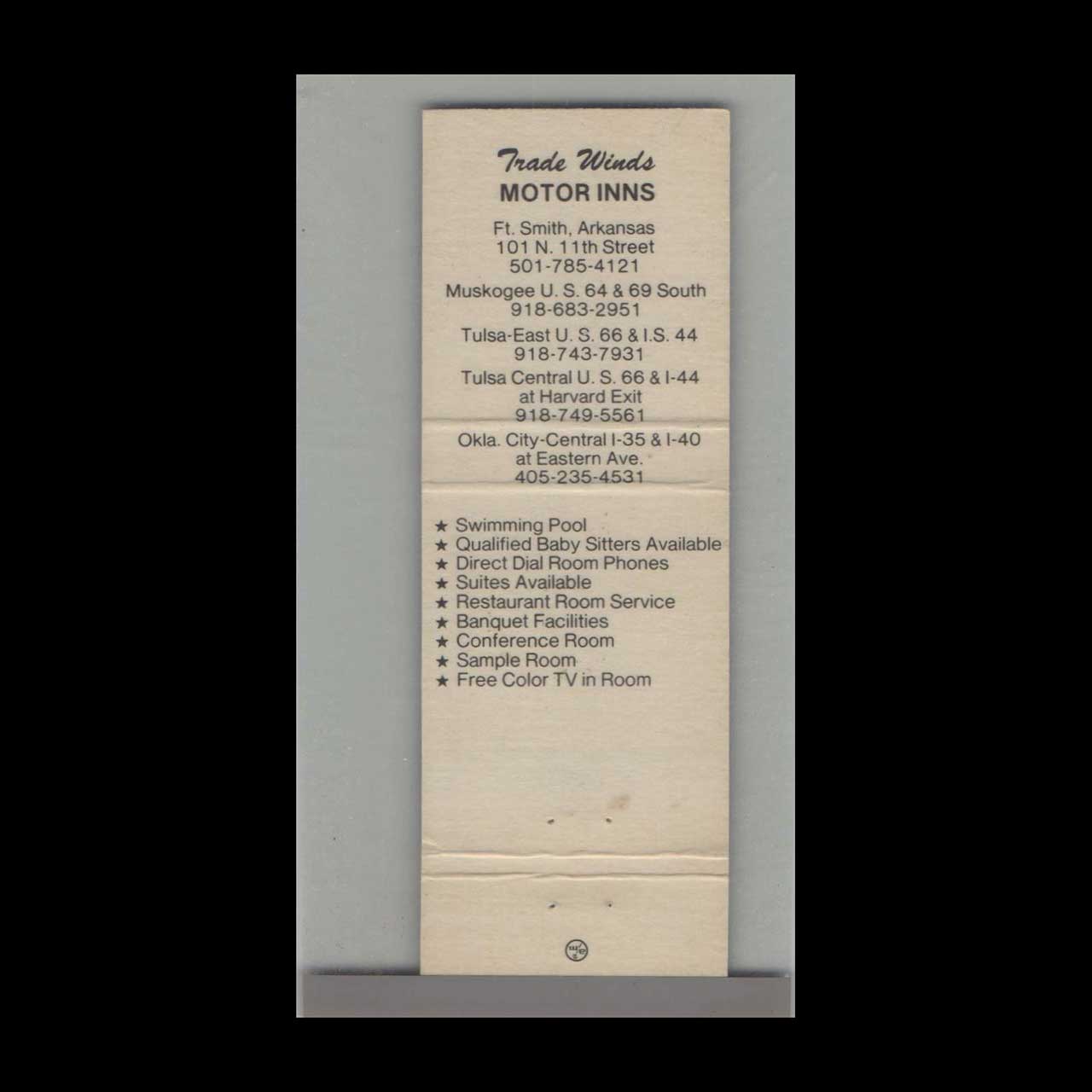 Vintage matchbook cover advertising Oklahoma – Trade Winds Motor Inns Muskogee, OK.