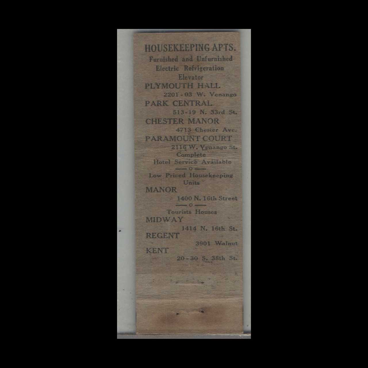 Vintage matchbook cover advertising Old Hotel – Clinton Hotel Philadelphia, PA.