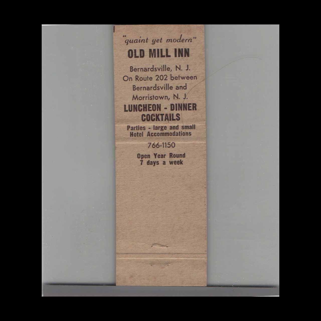 Vintage matchbook cover advertising Old Mill Inn Bernardsville, NJ.