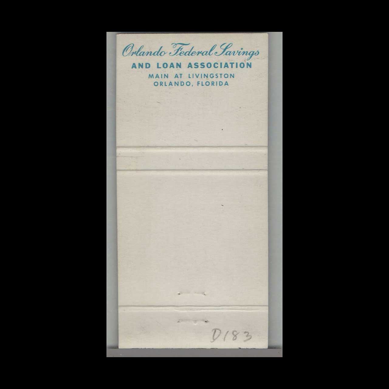 Matchbook Cover Orlando Federal Savings Bank Orlando, FL