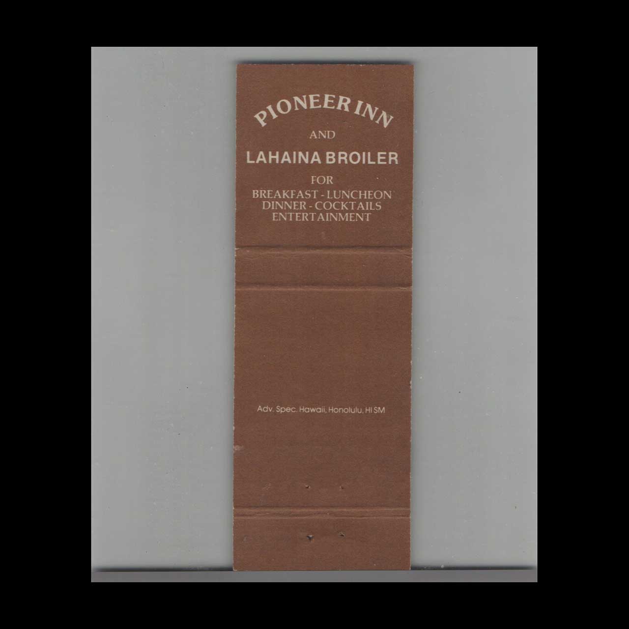 Vintage matchbook cover advertising Pioneer Inn Old Whalers Saloon Lahaina Maui, HI.