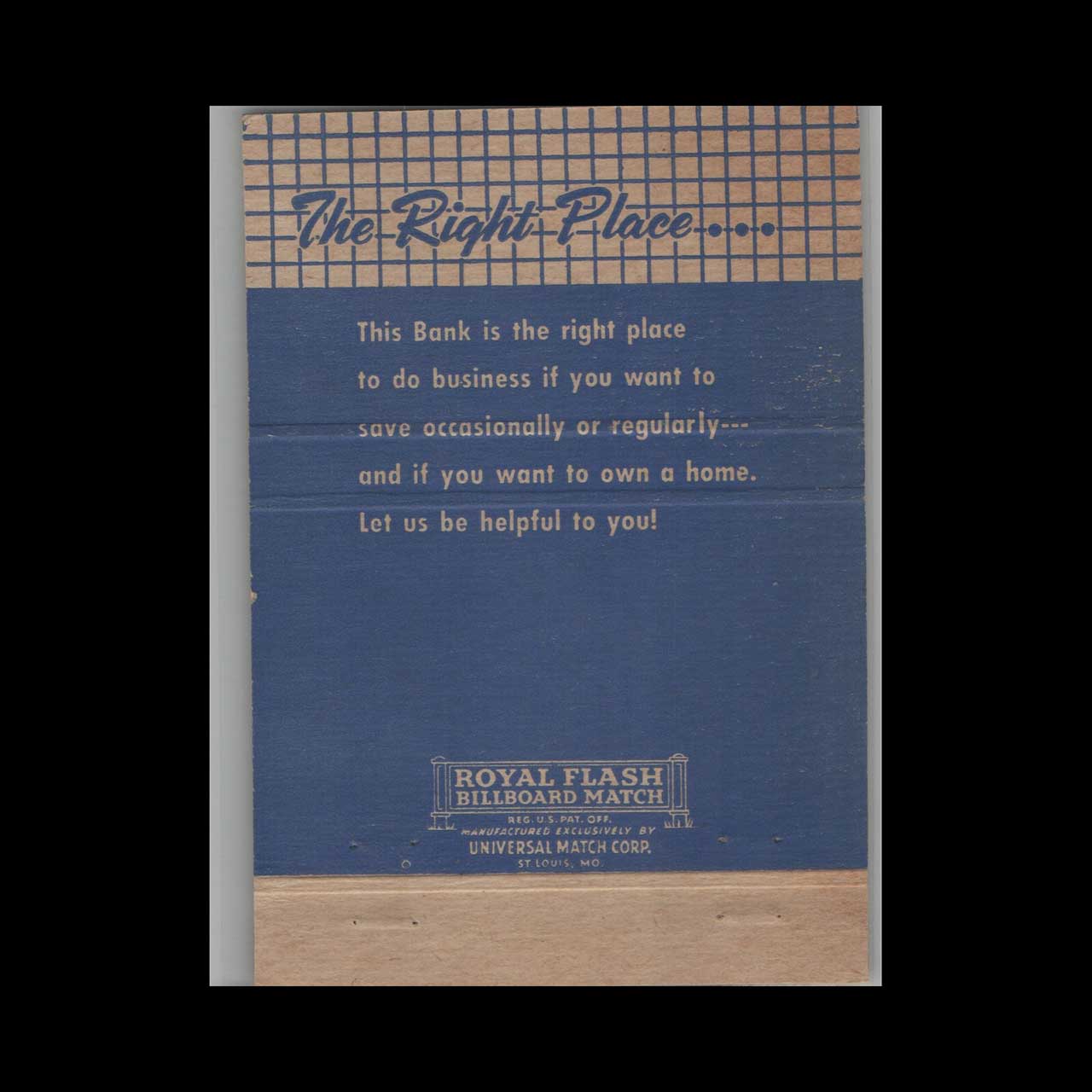Vintage matchbook cover advertising Pittsfield Co-Operative Bank Pittsfield MA.