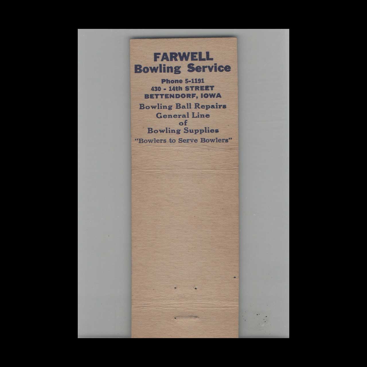 Matchbook Cover Plaza Bowl Bettendorf IA