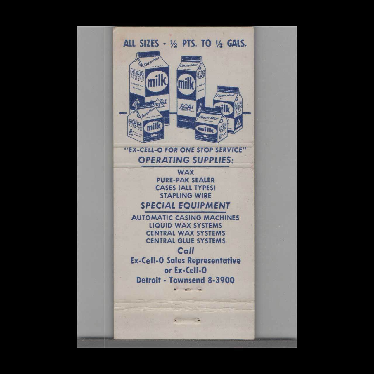 Vintage matchbook cover advertising Pure-Pak Personal Milk Container Detroit, MI.