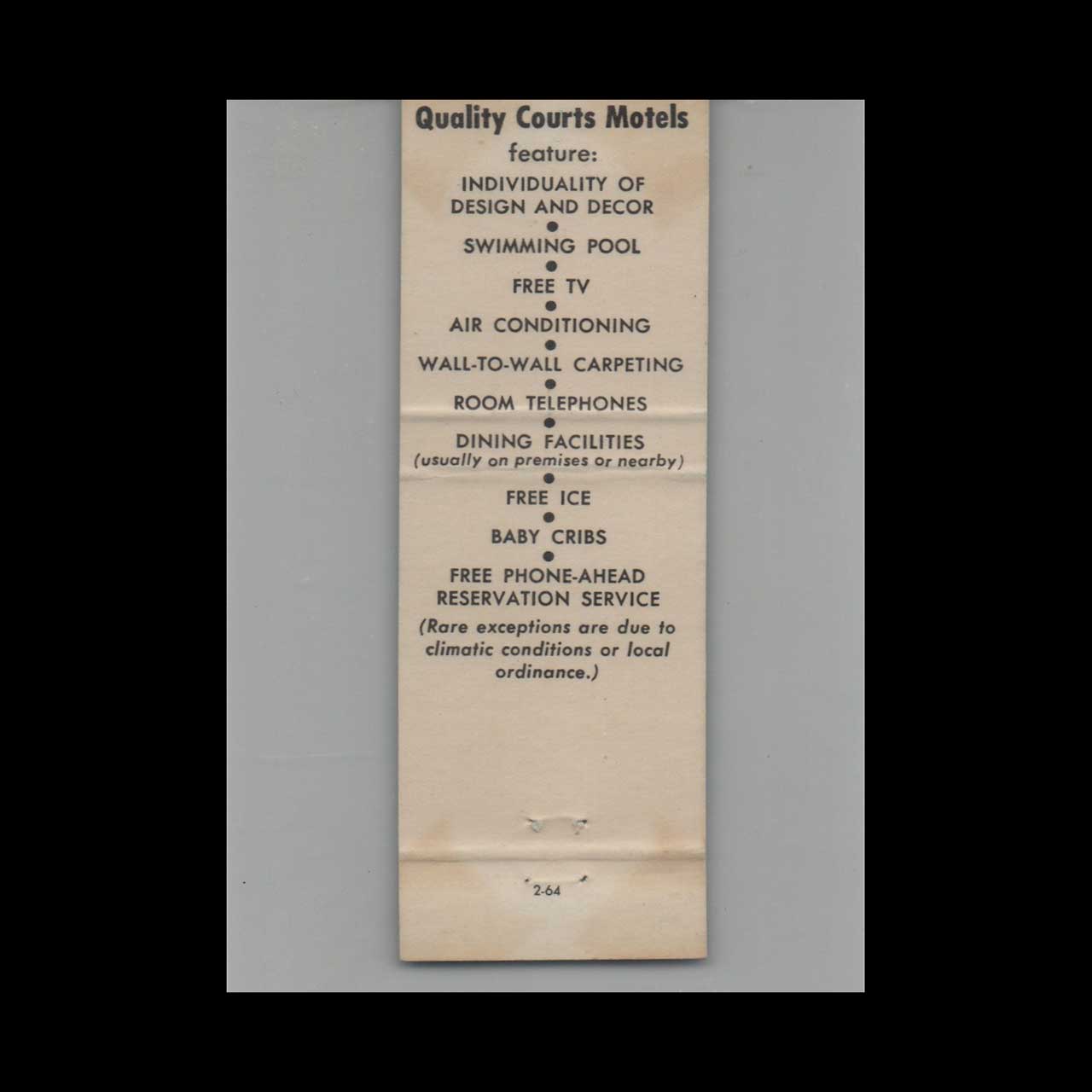 Vintage matchbook cover advertising Quality Court Motel Fort Myers, FL.