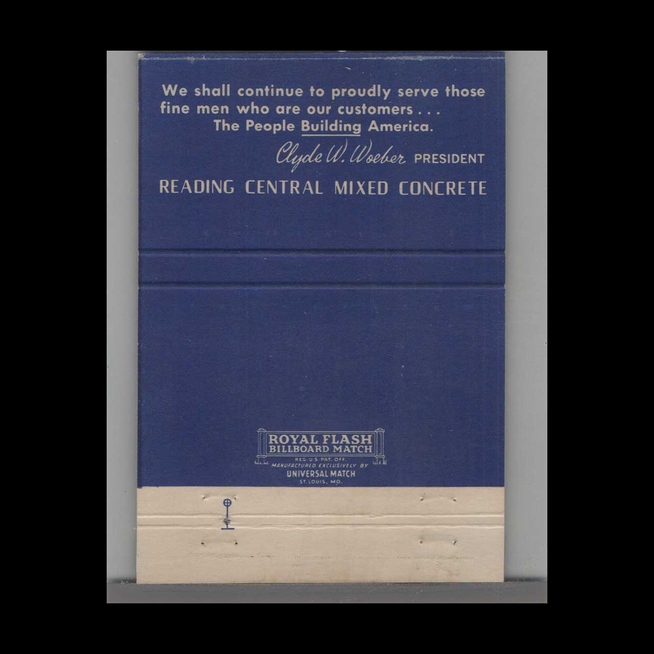 Vintage matchbook cover advertising Reading Central Mixed Concrete Cincinnati, OH.
