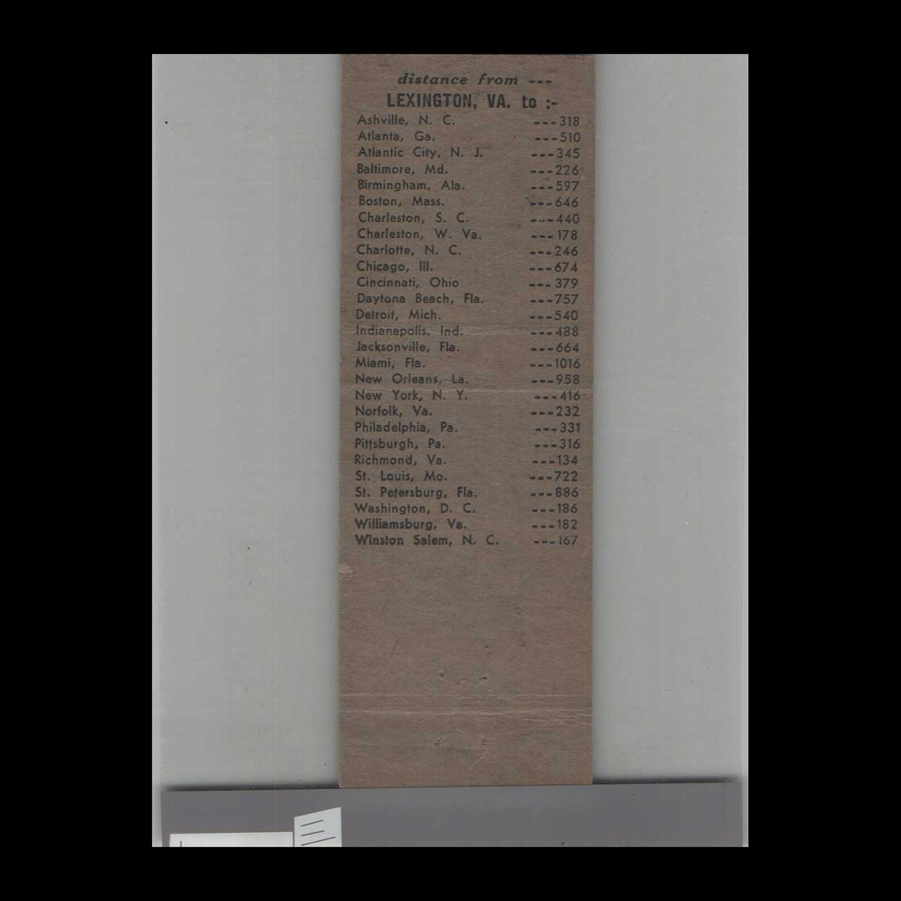Vintage matchbook cover advertising Robert E. Lee Hotel Lexington, VA.