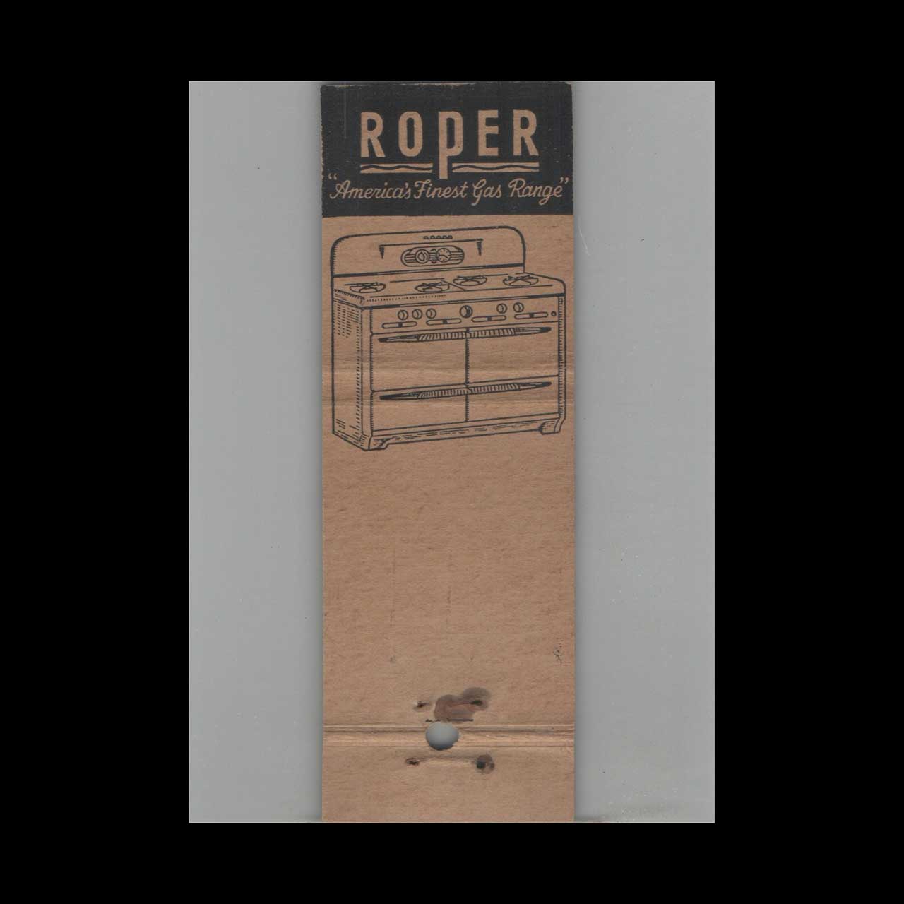 Vintage matchbook cover advertising Roger’s Emery-ettes For Nails – Roper Gas Ranges.