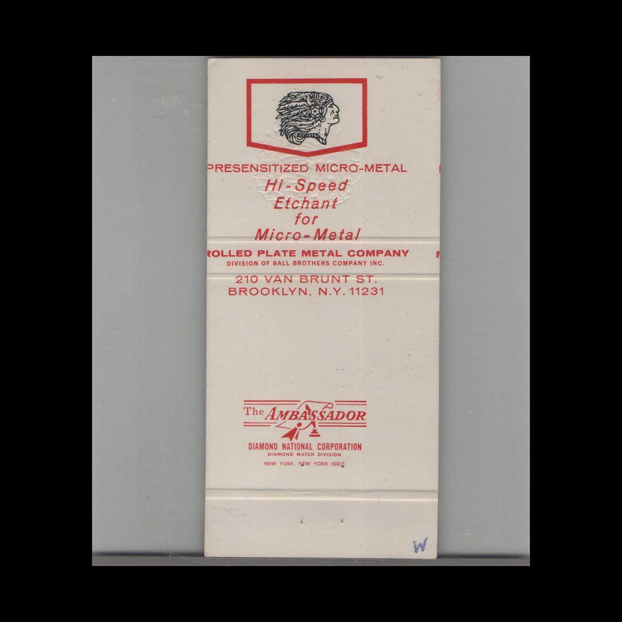 Matchbook Cover Rolled Plate Metal Co Brooklyn NY