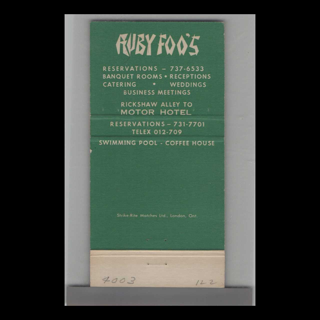Tags: matchbook cover, matchcover, Ruby Foo's
