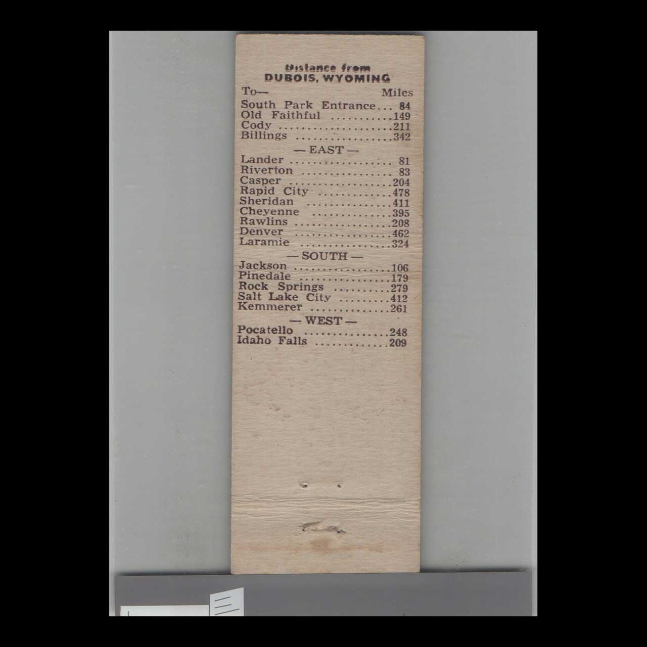 Vintage matchbook cover advertising Rustic Pine Tavern Dubois, WY.