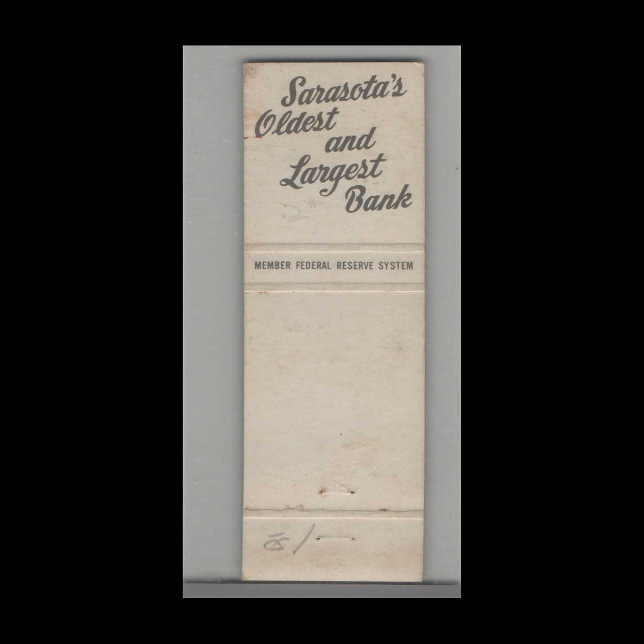 Vintage matchbook cover advertising Sarasota, FL Palmer First National Bank.