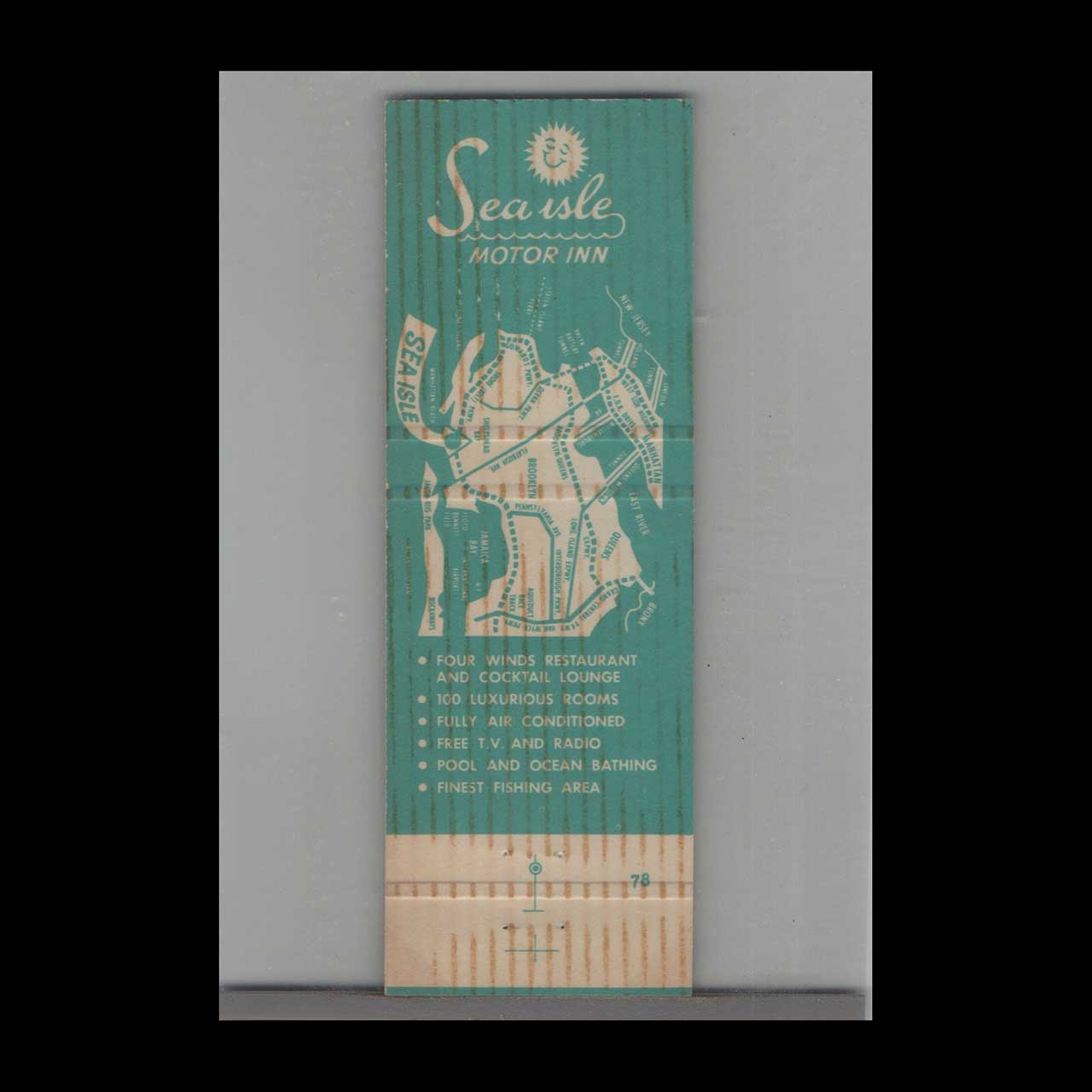 Vintage matchbook cover advertising Sea Isle Motor Inn Brooklyn, NY.