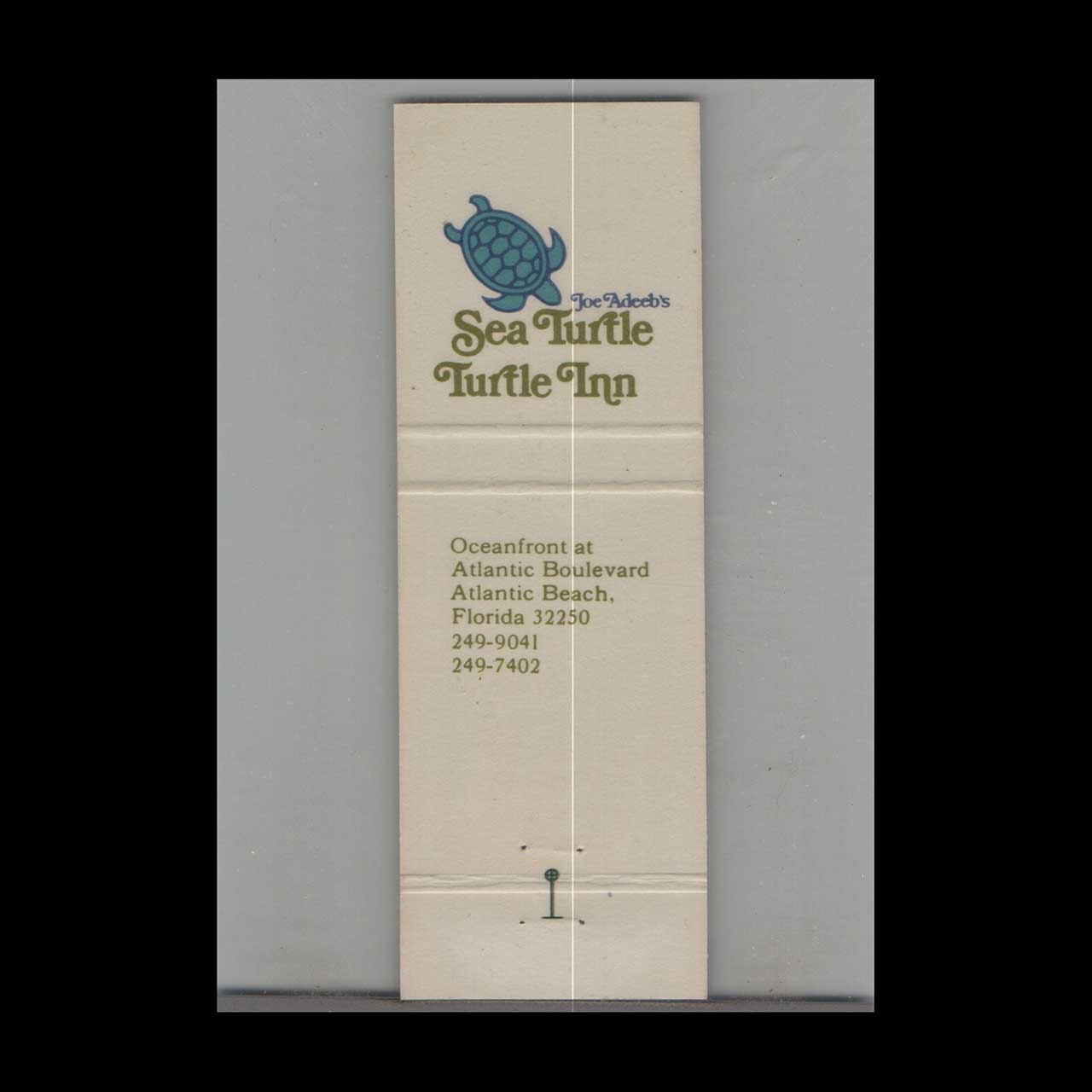 Vintage matchbook cover advertising Sea Turtle – Turtle Inn Atlantic Beach, FL.