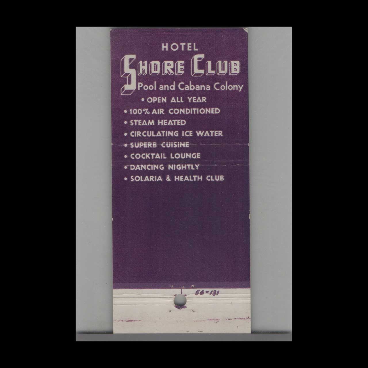Vintage matchbook cover advertising Shore Club Hotel Maimi Beach, FL.