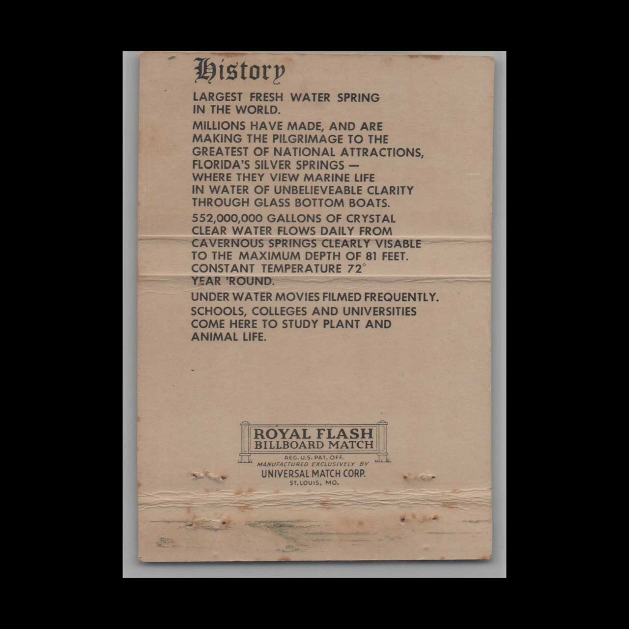 Vintage matchbook cover advertising Silver Springs Ocala FL A Skin Game.