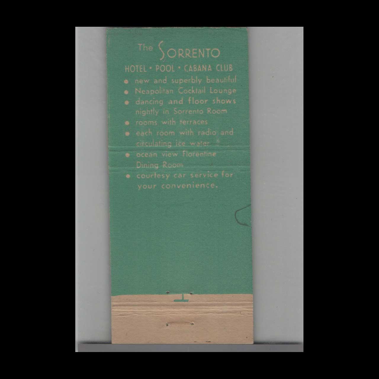 Vintage matchbook cover advertising Sorrento On The Ocean Miami Beach, FL.