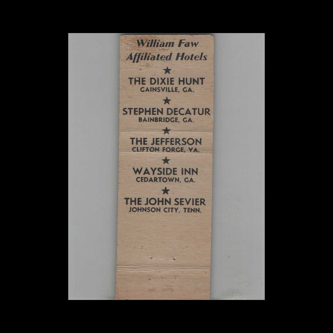 Matchbook Cover Southern Hotel Gainesville GA