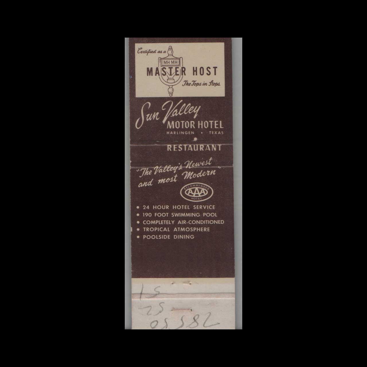 Matchbook Cover Sun Valley Hotel Harlingen, TX
