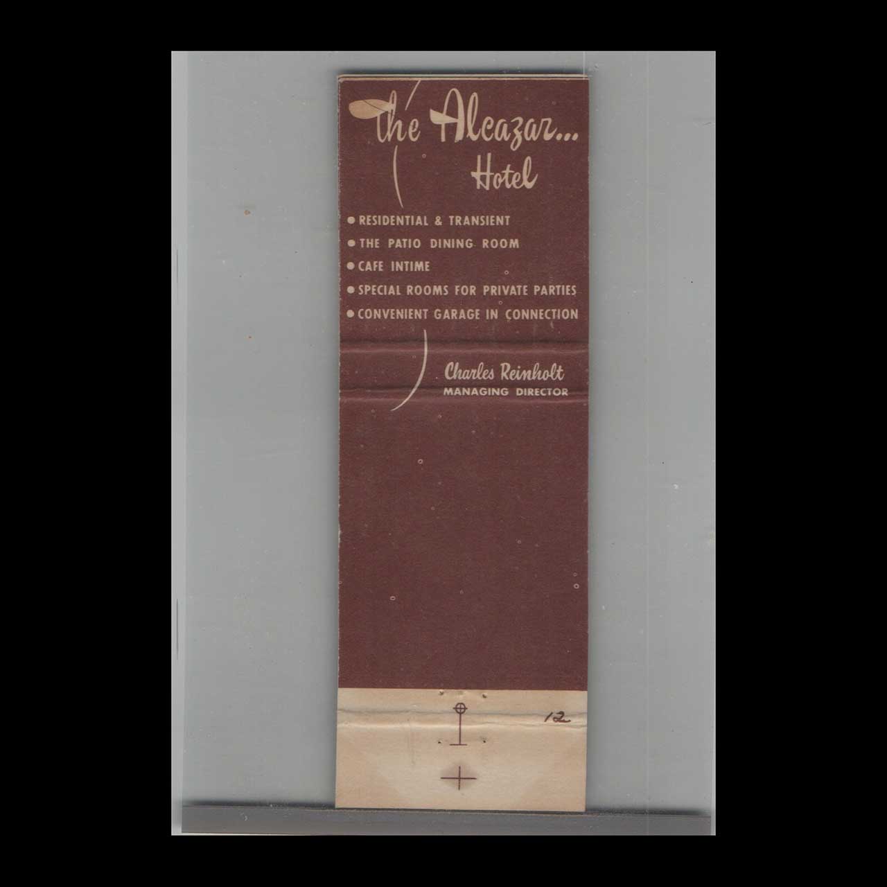 Vintage matchbook cover advertising The Alcazar Hotel Cleveland Heights, OH.