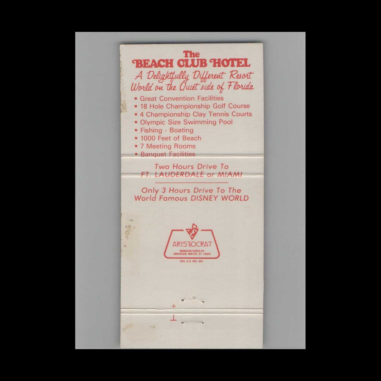 Matchbook Cover The Beach Club Hotel Naples, FL