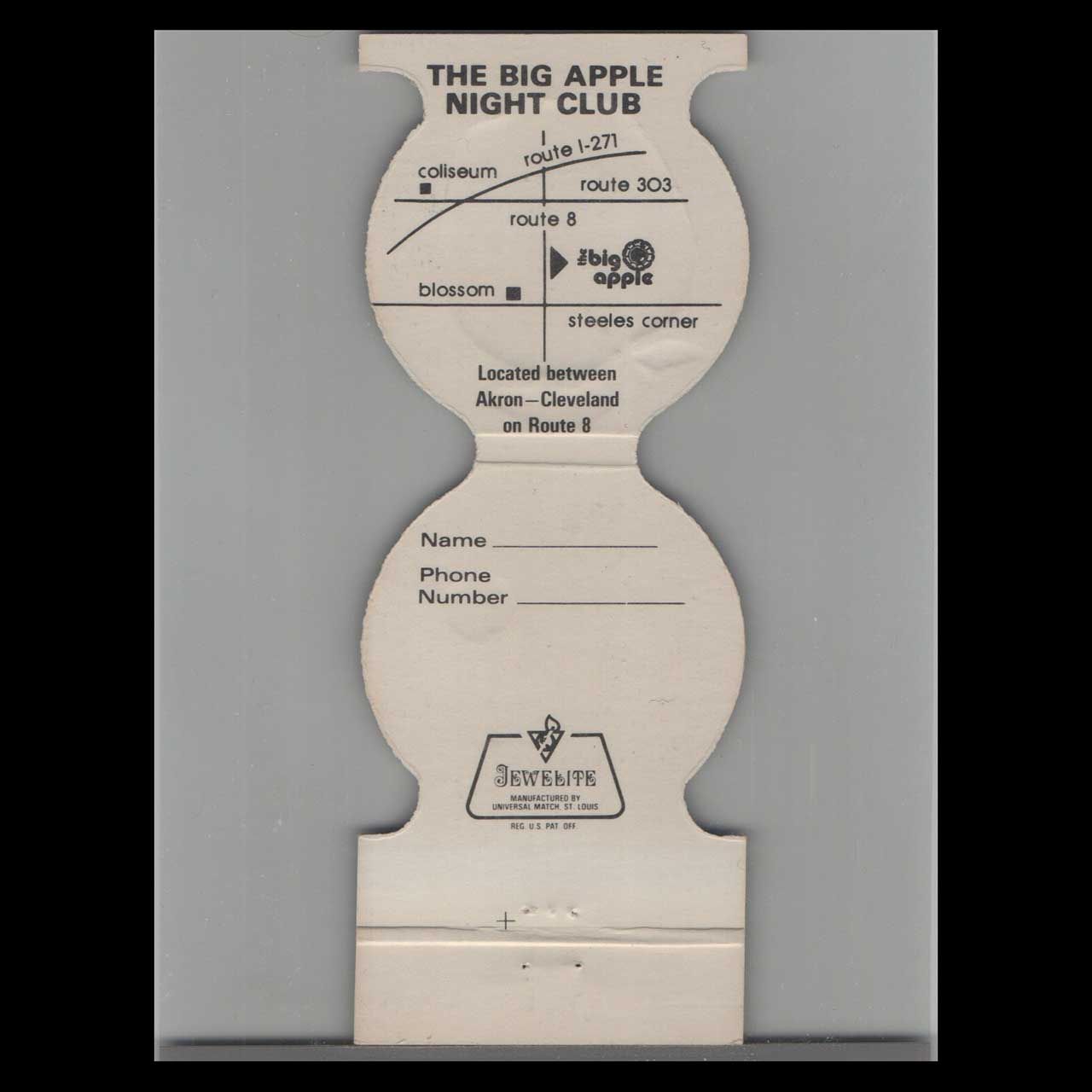 Vintage matchbook cover advertising The Big Apple Night Club Cleveland – Akron, OH.
