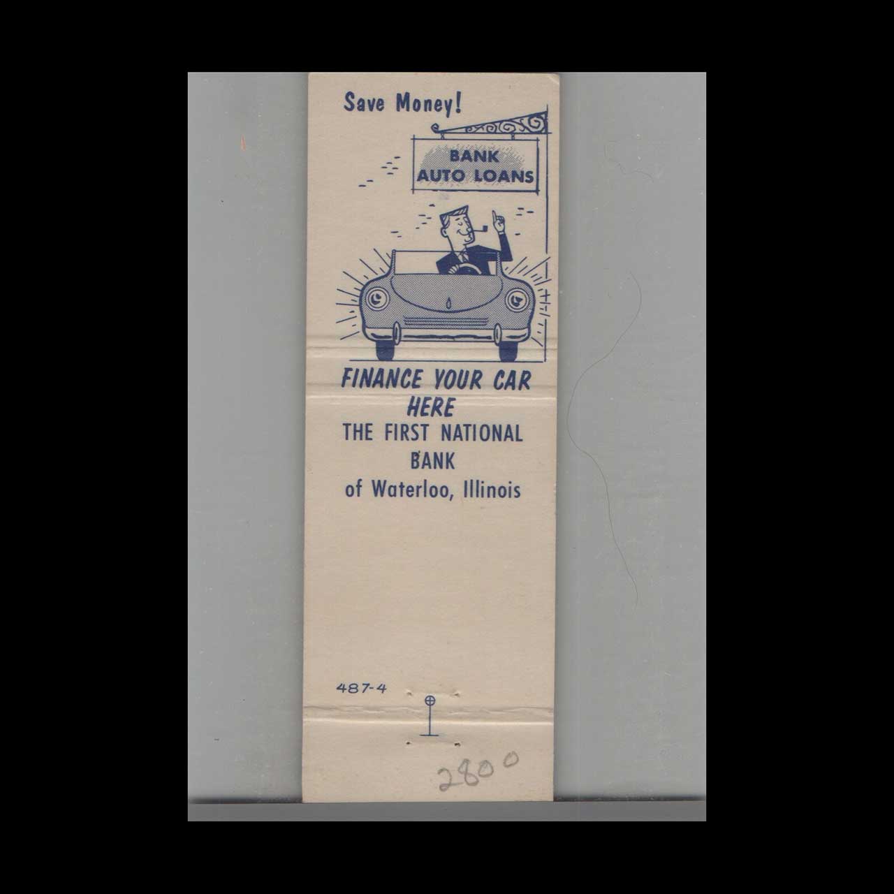 Vintage matchbook cover advertising The First National Bank Of Waterloo, IL.