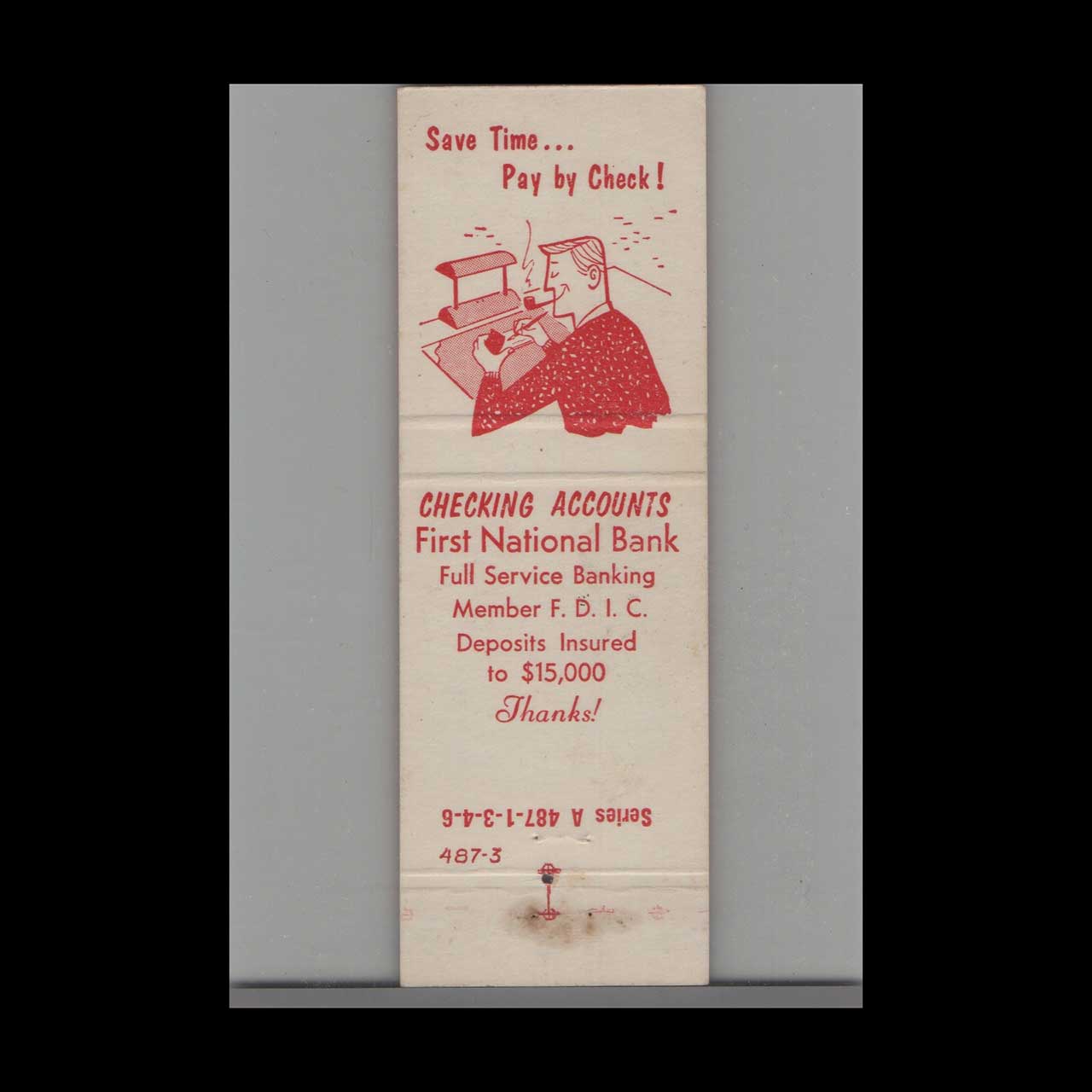 Vintage matchbook cover advertising The First National Bank Ottawa, KS.