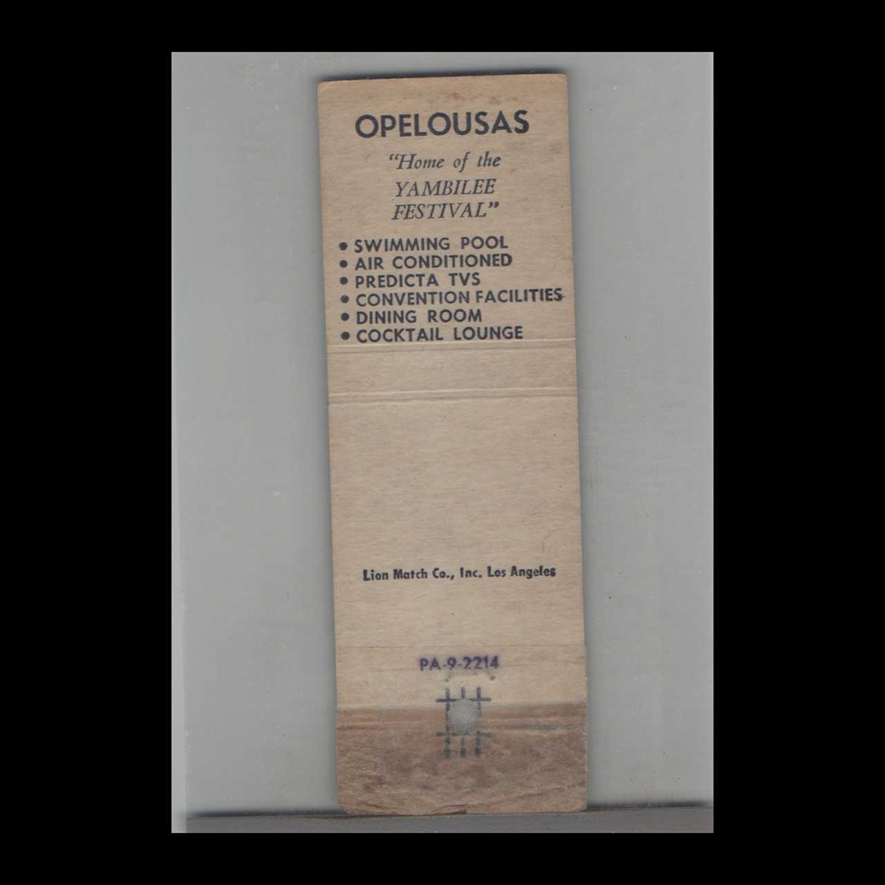 Vintage matchbook cover advertising The Inn At Opelousas, LA.