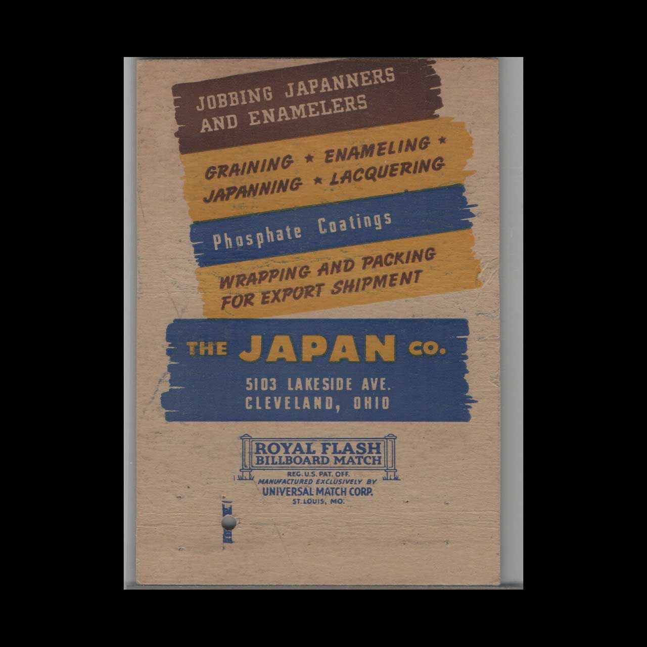 Vintage matchbook cover advertising The Japan Company Industrial Finishers Cleveland OH.