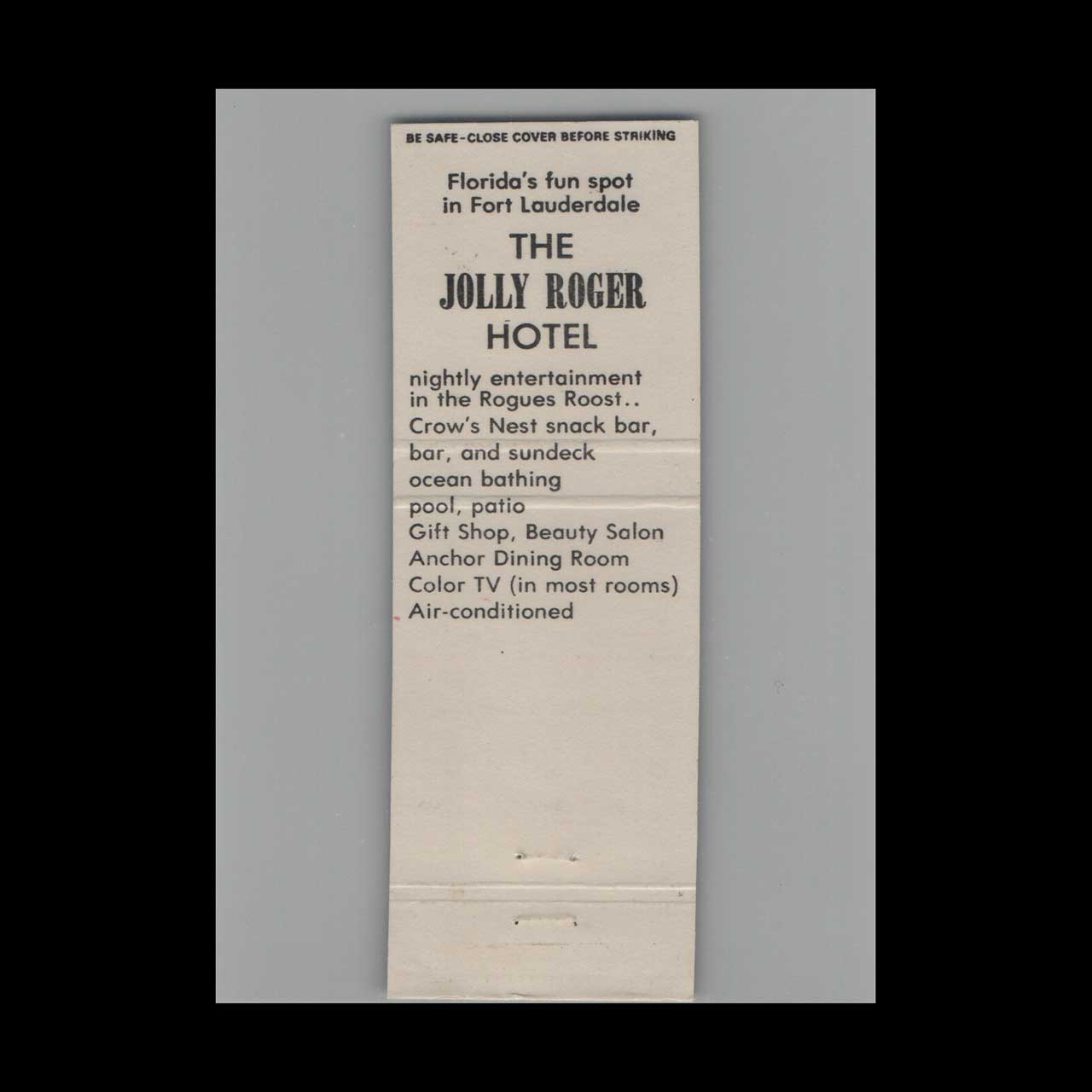 Vintage matchbook cover advertising The Jolly Roger Fort Lauderdale, FL.