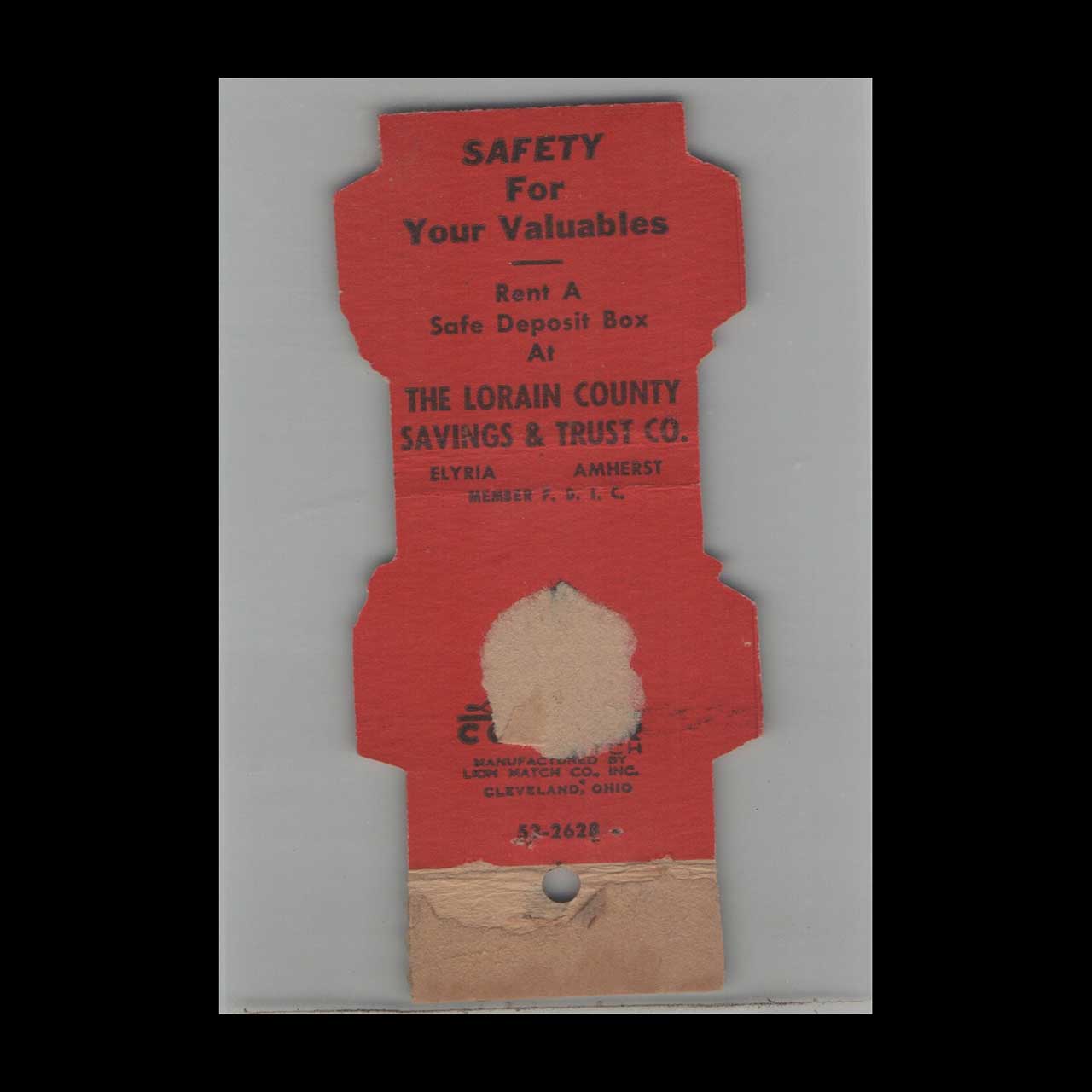 Vintage matchbook cover advertising The Lorain County Savings & Trucks Company Elyria OH.