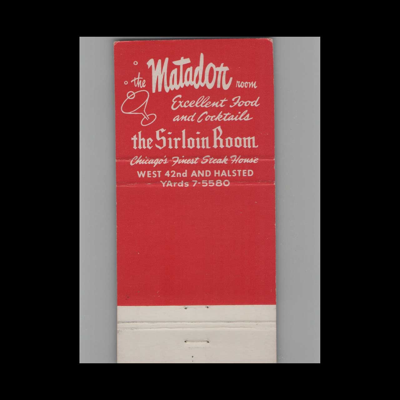 Vintage matchbook cover advertising The Matador Room Stock Yard Inn Chicago IL.
